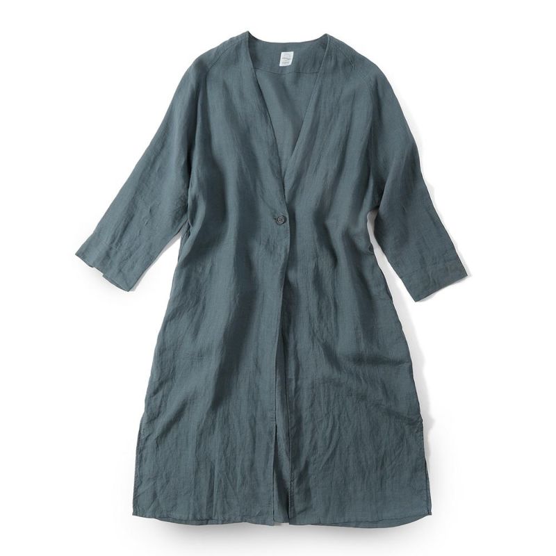 さらりとした肌触りが心地よい、麻100%のロングカーディガンです。