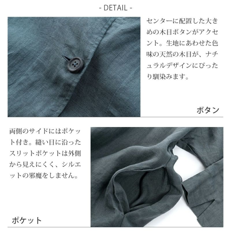 リネンならではのナチュラルな風合いはそのままに、こだわり抜いた絶妙な色合いは渋みがあり落ち着いた品を感じます。