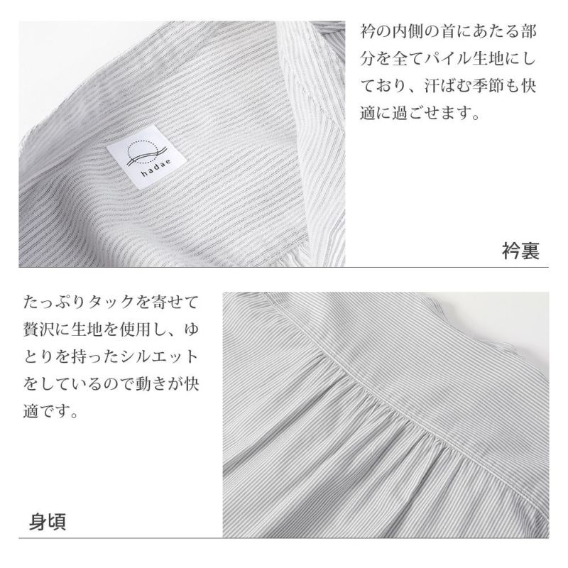 襟台やカフス裏などの肌に直接当たる部分を全てパイル生地にしているので、全身がタオルに包まれる心地よさを味わっていただけます。