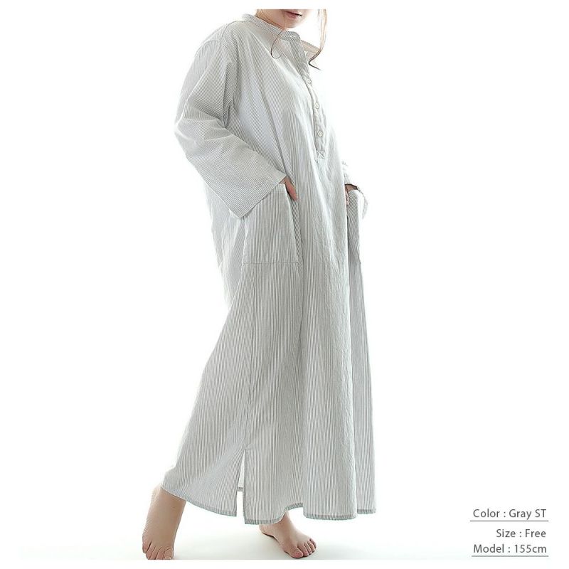 ボリュームシルエットが特徴の、快適さを重視した素材とデザインの部屋着ワンピースです。