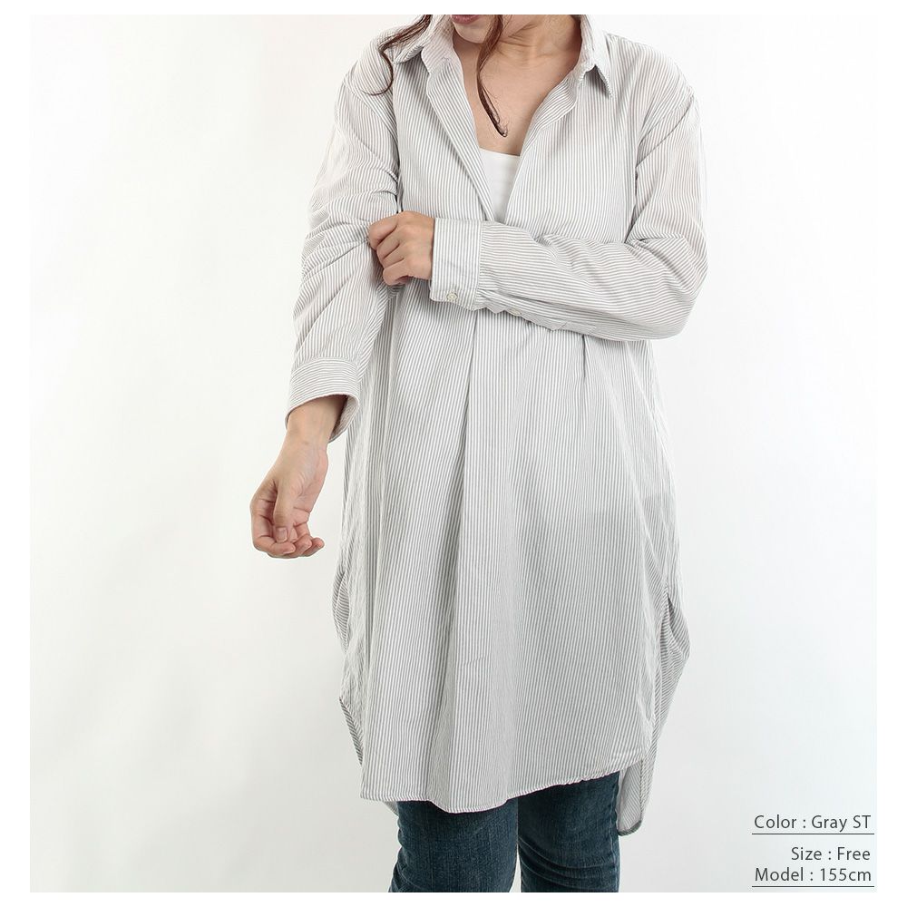 他の画像を見る ラフに羽織ってもワンピースとしてもコーディネートを楽しめる 今治タオル プレミアムパイル レディース シャツワンピース 長袖 グレーストライプ 価格 ¥ 16,500 税込 カートに入れる お気に入りに登録する