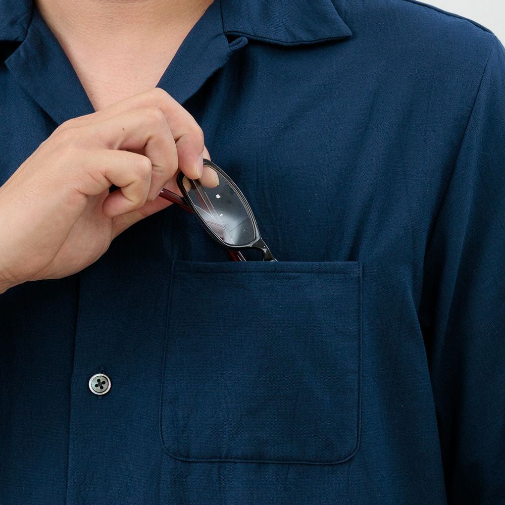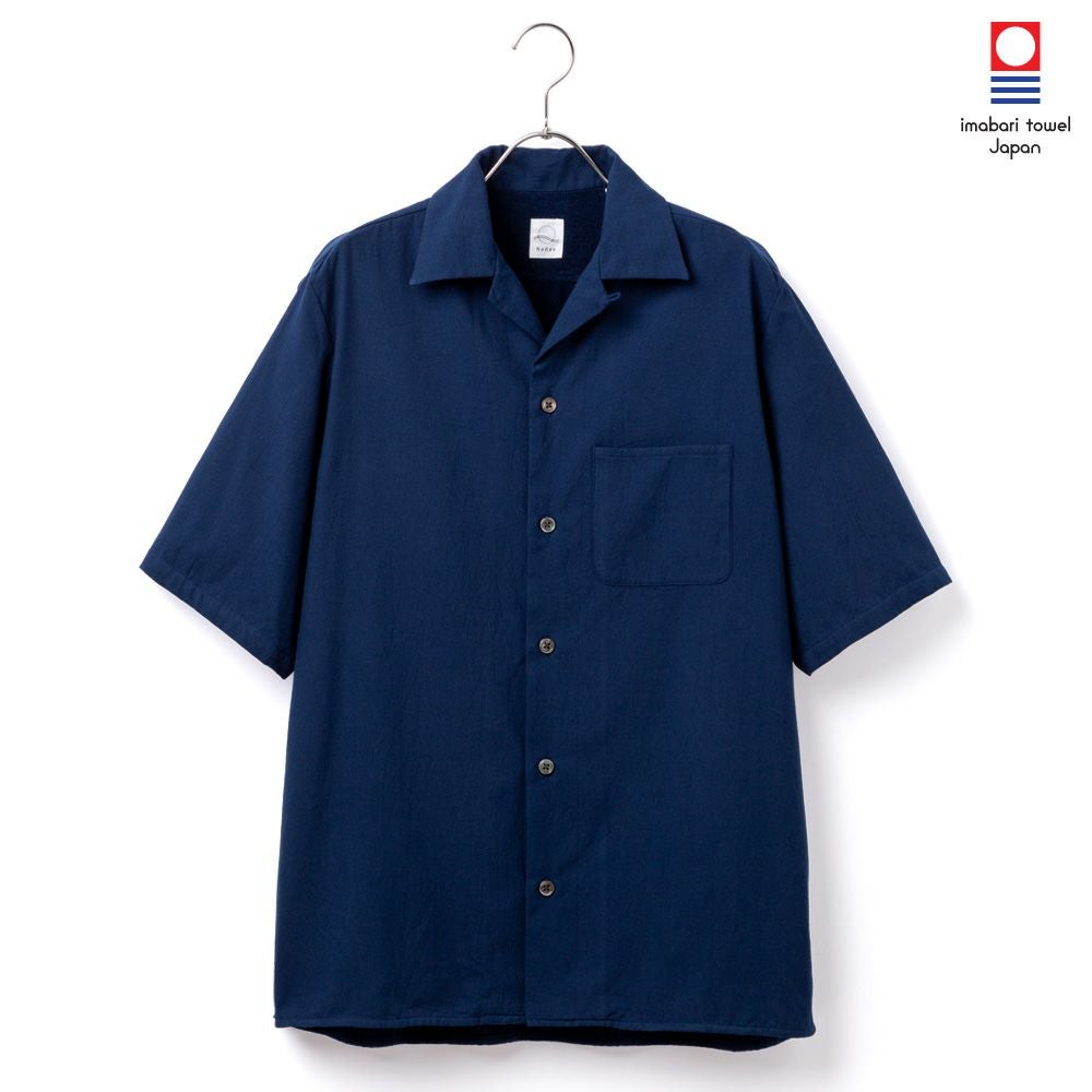 今治タオル プレミアムパイル メンズ カジュアルシャツ 半袖 オープンカラー ネイビー