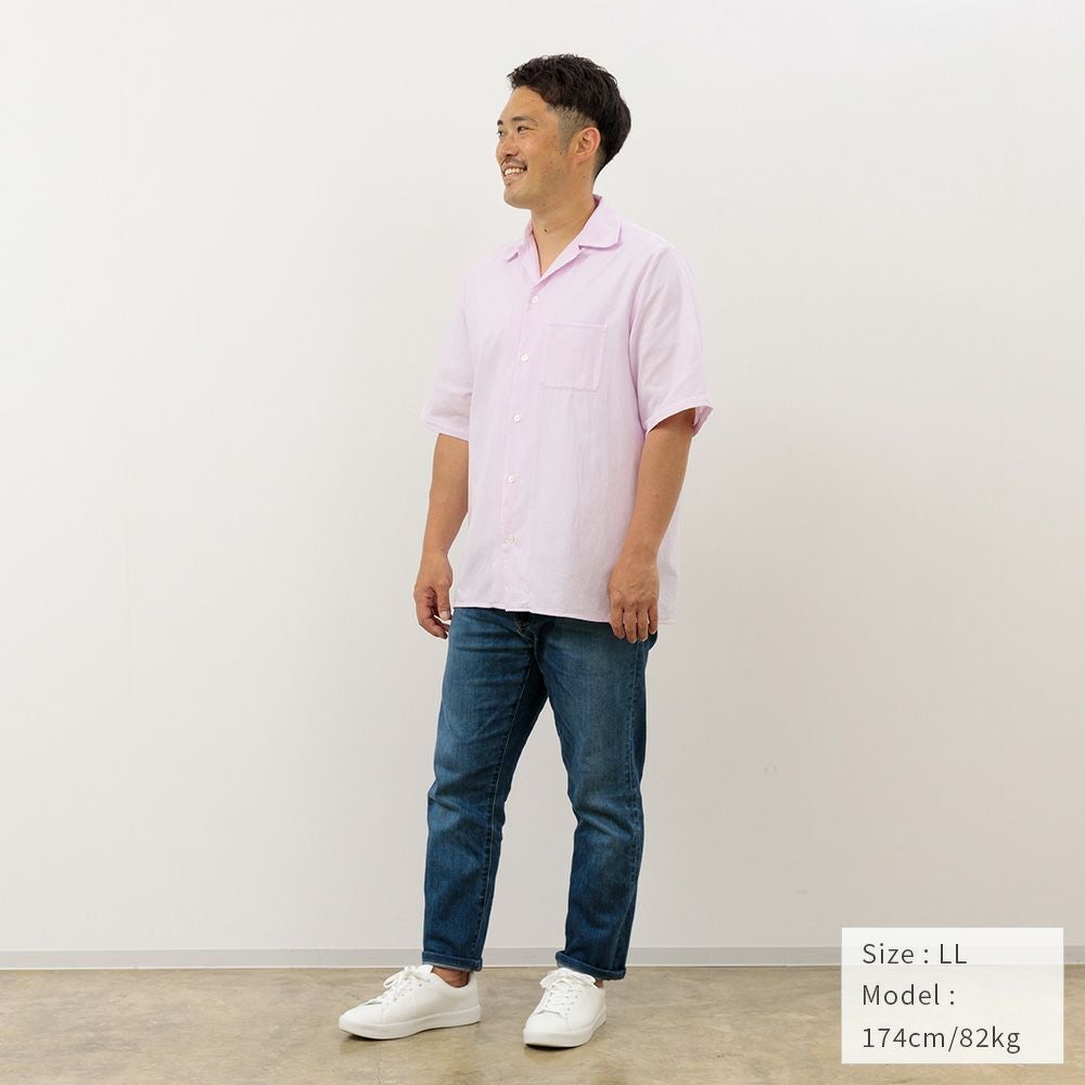 今治タオル プレミアムパイル メンズ カジュアルシャツ 半袖 オープンカラー ピンク