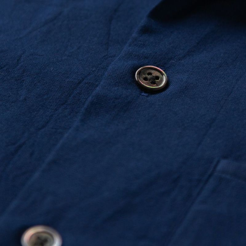 ボタンは生地に似合う柔らかな光沢の淡水貝を、程よいアクセントになるよう少し大きめのサイズでセレクトしました。