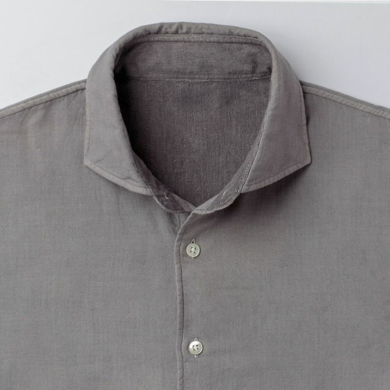 パイル(タオル)の優しい肌触りと、天然の柔らかな色彩を併せ持ち、hadaeらしいシャツになりました。