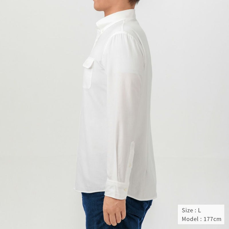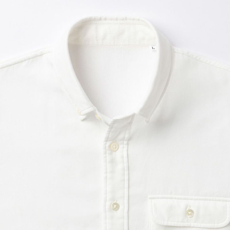 7. 今治タオル プレミアムパイル メンズ カジュアルシャツ 長袖 ボタンダウン フラップポケット付き ホワイト