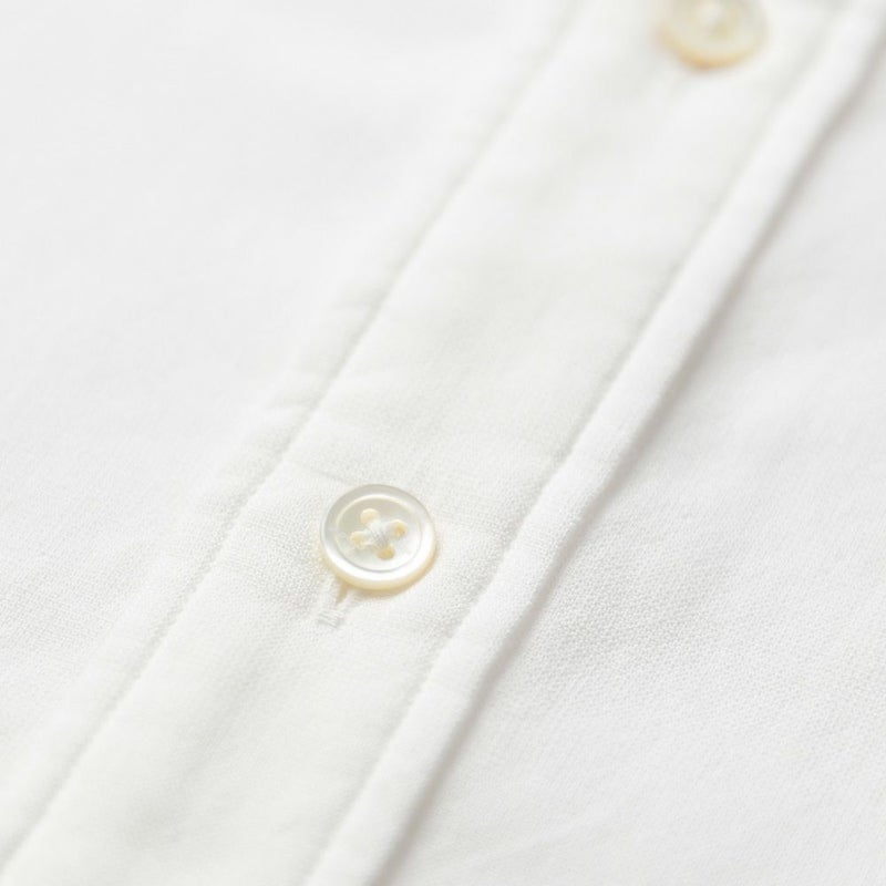 ボタンに使用した淡水貝は、生地に似合う柔らかな雰囲気のシルキーホワイトカラー。