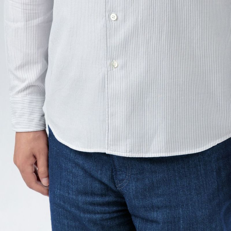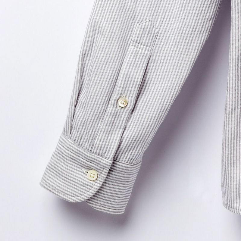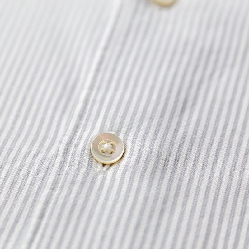 ボタンには人気の淡水貝を使用しており、生地に似合う柔らかな雰囲気のシルキーホワイトカラーです。
