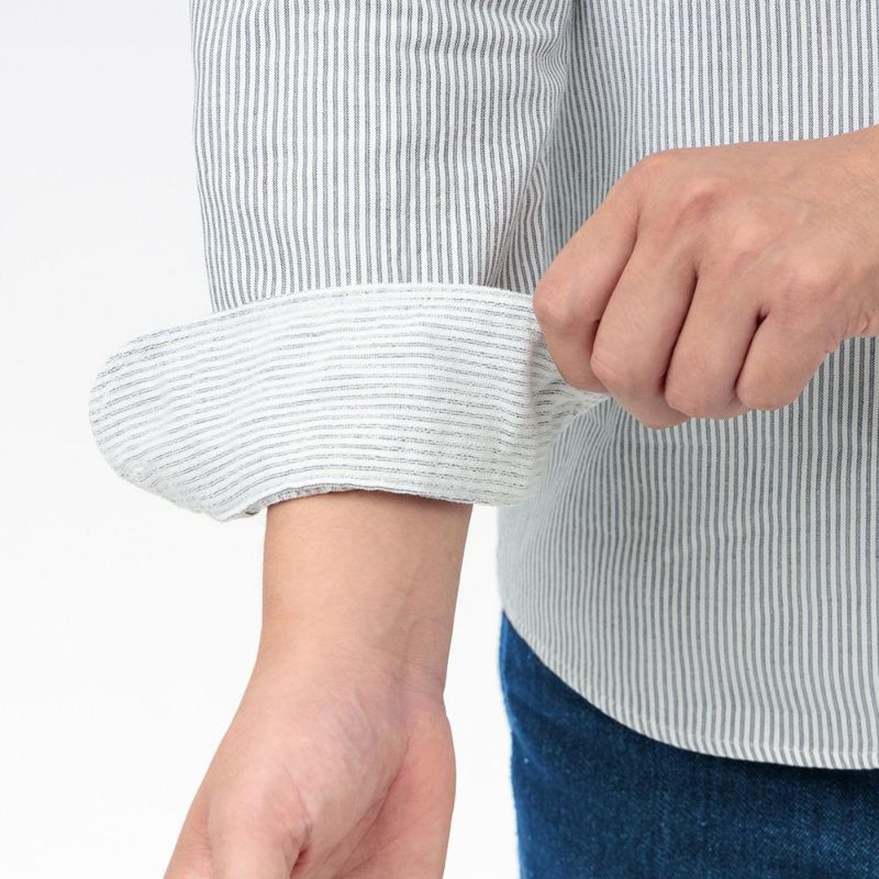 洗いざらしでナチュラルなシワ感がでますので、ノンアイロンでの着用をお奨めします。