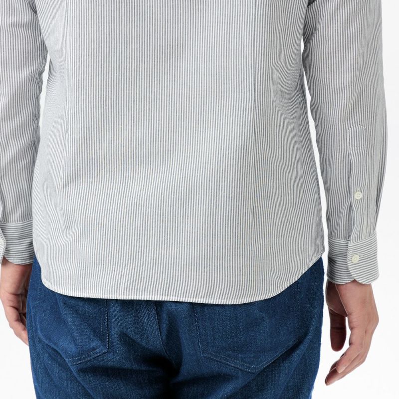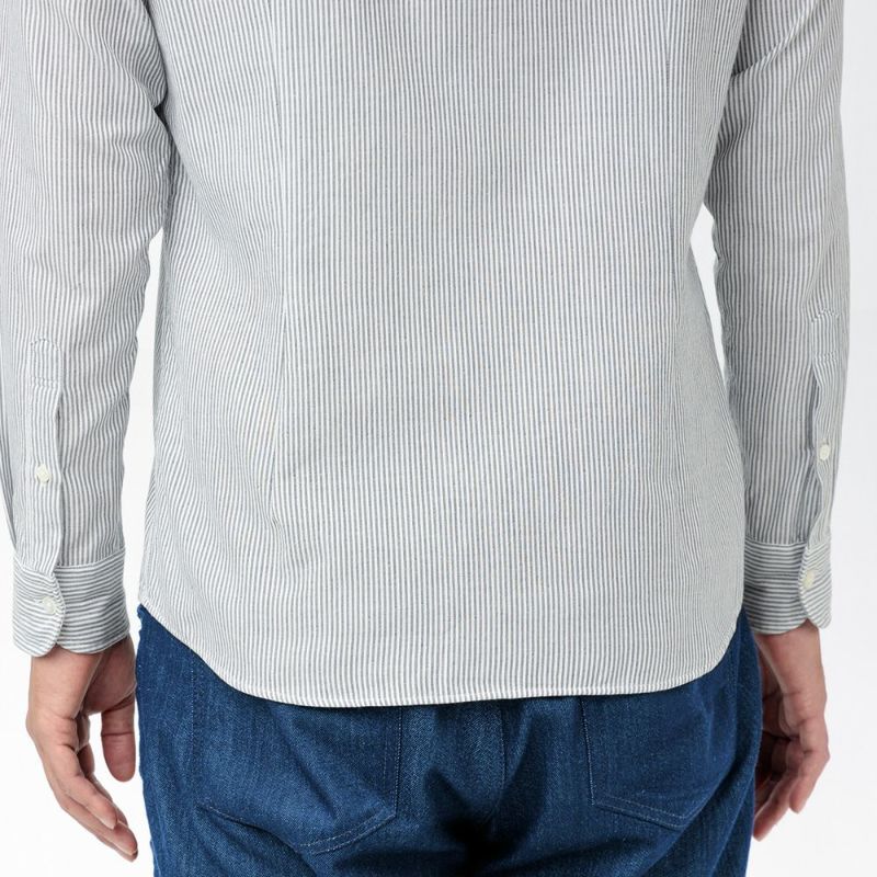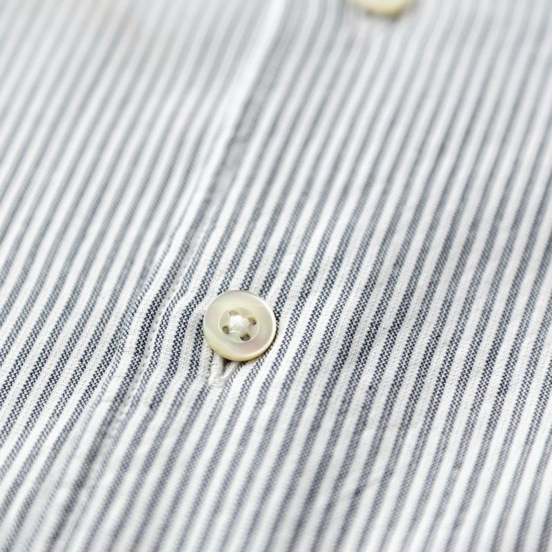 ボタンには人気の淡水貝を使用しており、生地に似合う柔らかな雰囲気のシルキーホワイトカラーです。