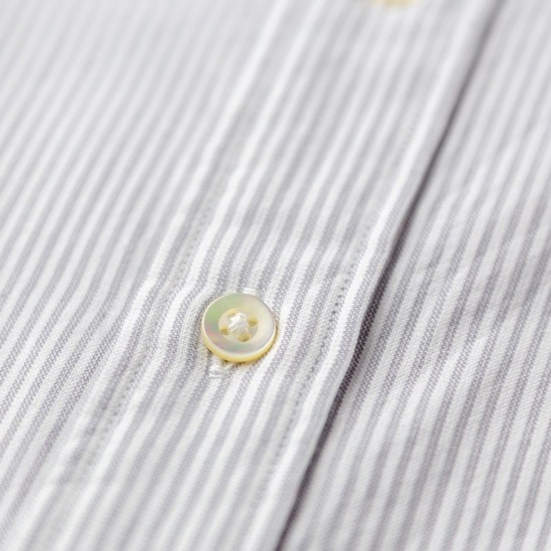 ボタンには人気の淡水貝を使用しており、生地に似合う柔らかな雰囲気のシルキーホワイトカラーです。