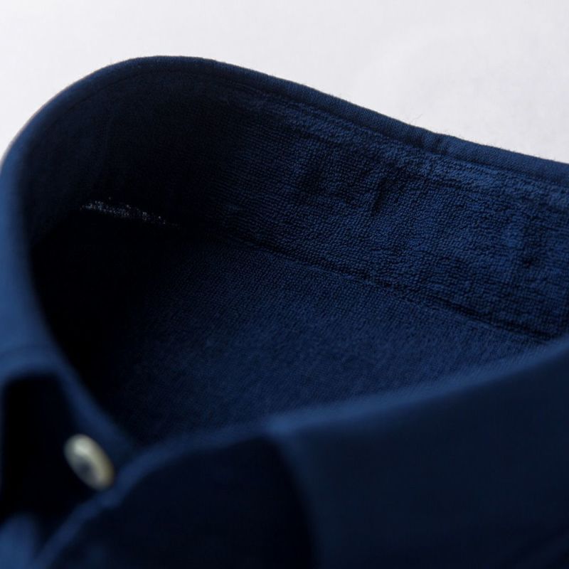 襟やカフス裏などの肌に直接当たる部分を全てパイル生地にしているので、タオルに包まれる心地よさを味わっていただけます。