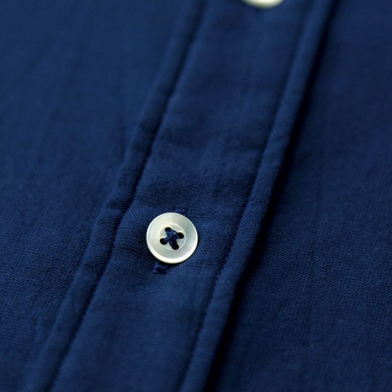ボタンには人気の淡水貝を使用しており、生地に似合う柔らかな雰囲気のシルキーホワイトカラーです。
