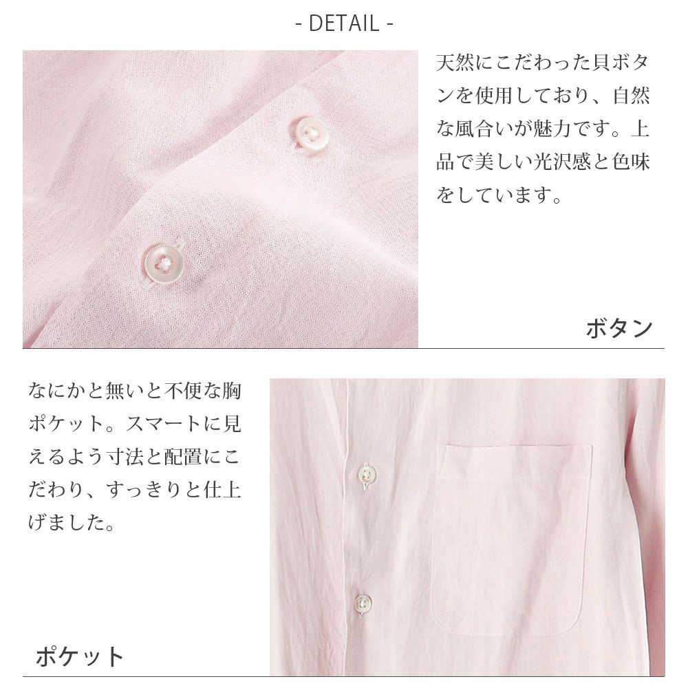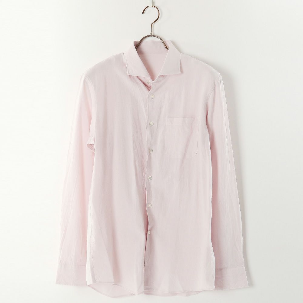 和紙繊維100% メンズ カジュアルシャツ 長袖 カッタウェイ ピンク