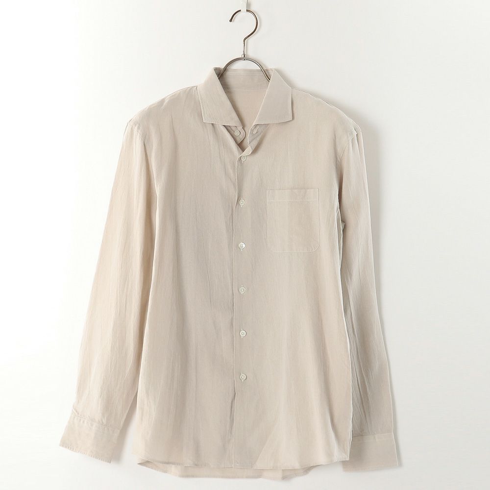 和紙繊維100% メンズ カジュアルシャツ 長袖 カッタウェイ ベージュ