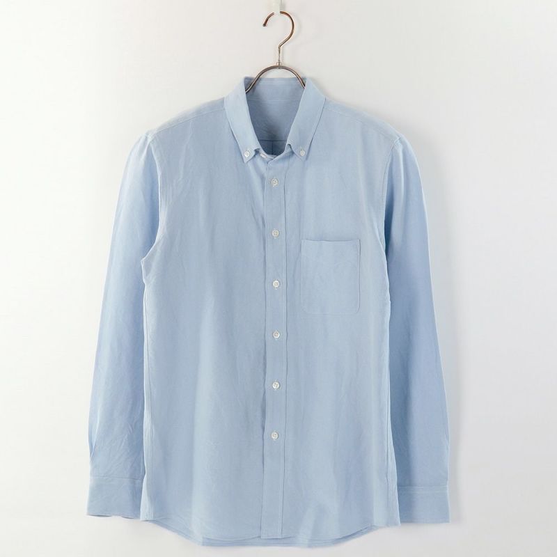 6. 和紙繊維100% オックスフォード メンズ カジュアルシャツ 長袖 ボタンダウン サックス