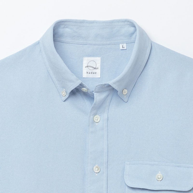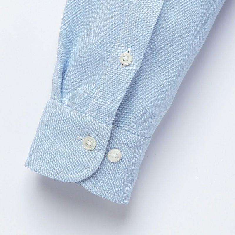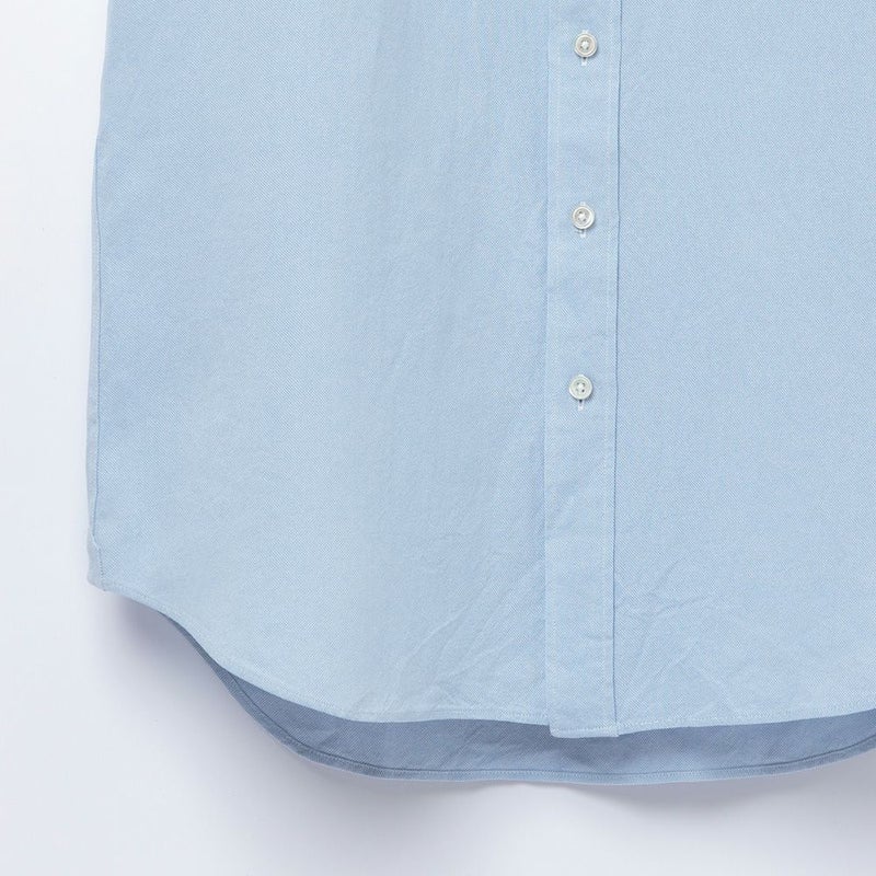 襟型はノーネクタイでも決まるボタンダウン。カジュアルに着こなすのはもちろん、パンツインしてジャケットを羽織ればビジネスシーンにも対応可能です。