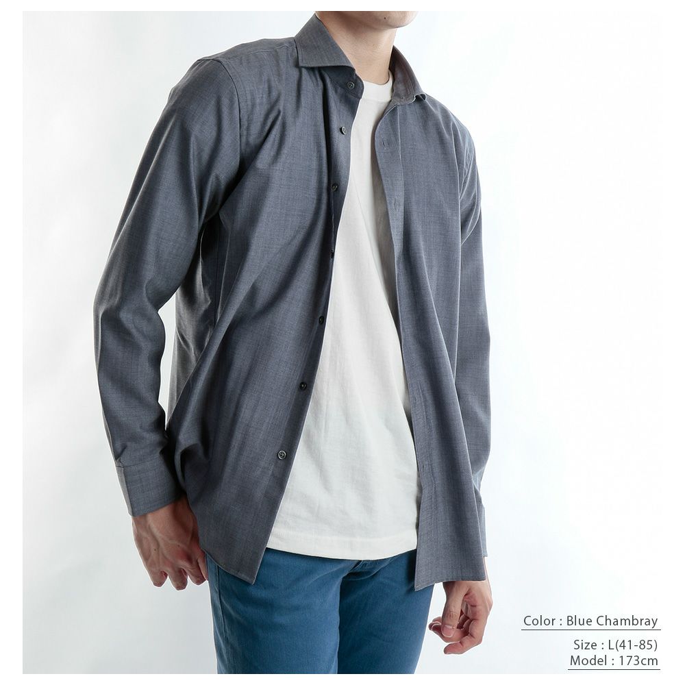他の画像を見る 国産生地でも生産量が少なく、各ブランドが競い求める『尾州ウール』をドレッシーなカジュアルシャツに 【尾州ウール】メンズ カジュアルシャツ 長袖 カッタウェイ ブルーシャンブレー スリムシルエット 価格 ¥ 15,400 税込 カートに入れる お気に入りに登録する