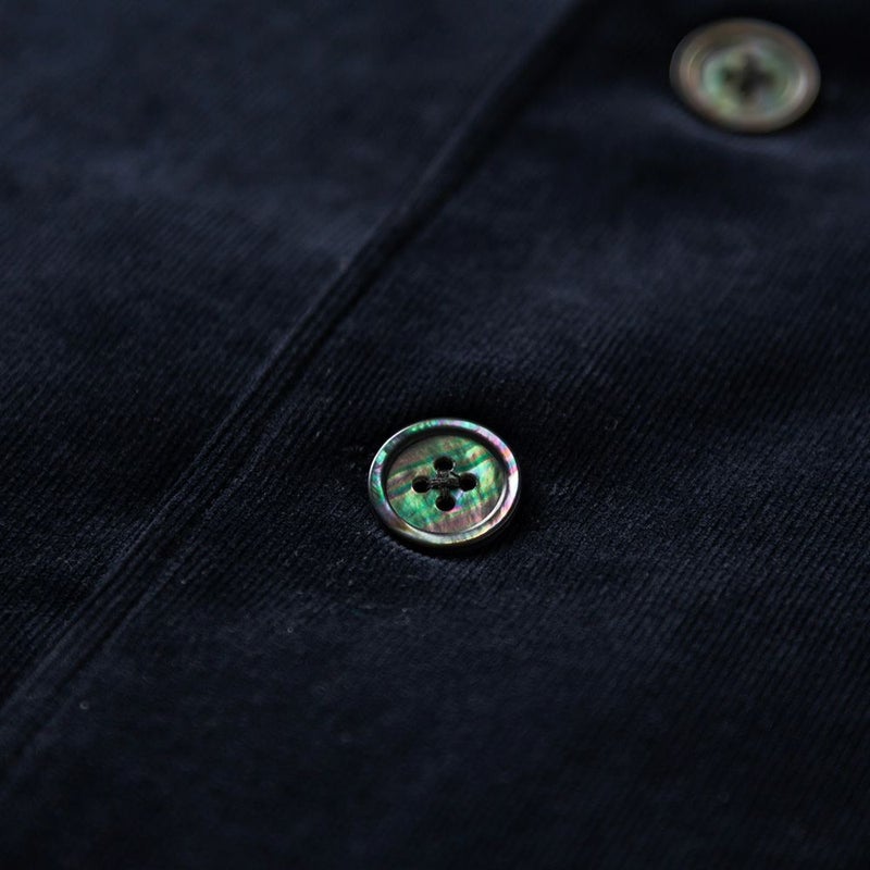 ボタンにはツヤ消し処理を施した黒蝶貝を採用し、ディテールにこだわったおしゃれな大人ジャケットに仕上げました。