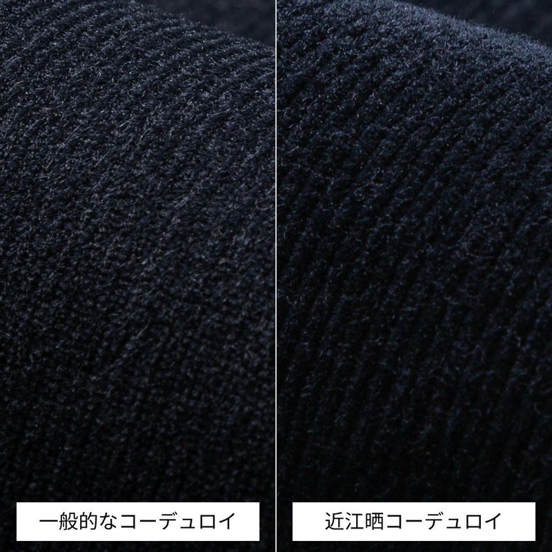 これまで、コットンを初めとする様々な天然繊維に用いられてきましたが、コーデュロイでは初の試み。試行錯誤の連続を乗り越えてできた「近江晒コーデュロイ」は、ふくらみのある極上の柔らかさを持つ貴重な生地となりました。