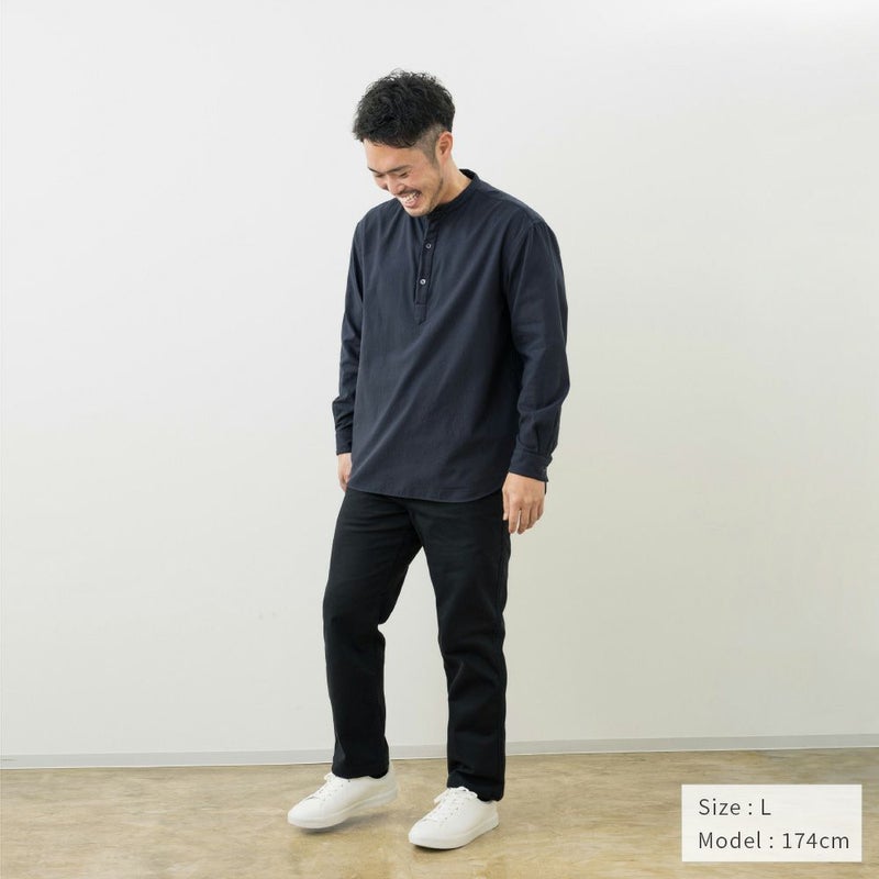 | 品名 | メンズ(ユニセックス) プルオーバーシャツ 長袖 バンドカラー |