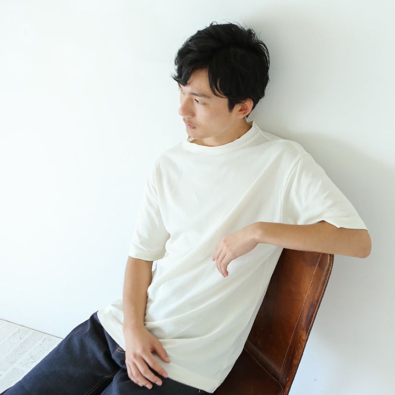 サラりとした肌触りとコットンやリネンの1/3と言われる軽量さ。注目の素材『和紙布』を半袖のカットソーに仕立てました。