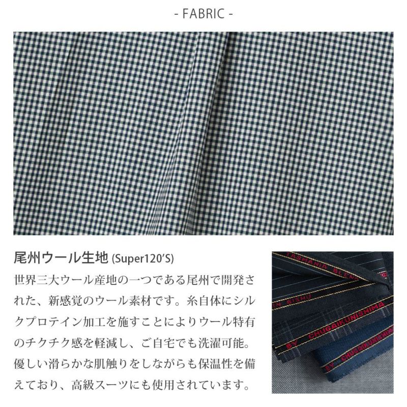 『尾州ウール』は世界三大ウール産地の一つとされ、尾州(愛知県尾張西部地域から岐阜県西濃地域)で開発された、新感覚のウール素材。