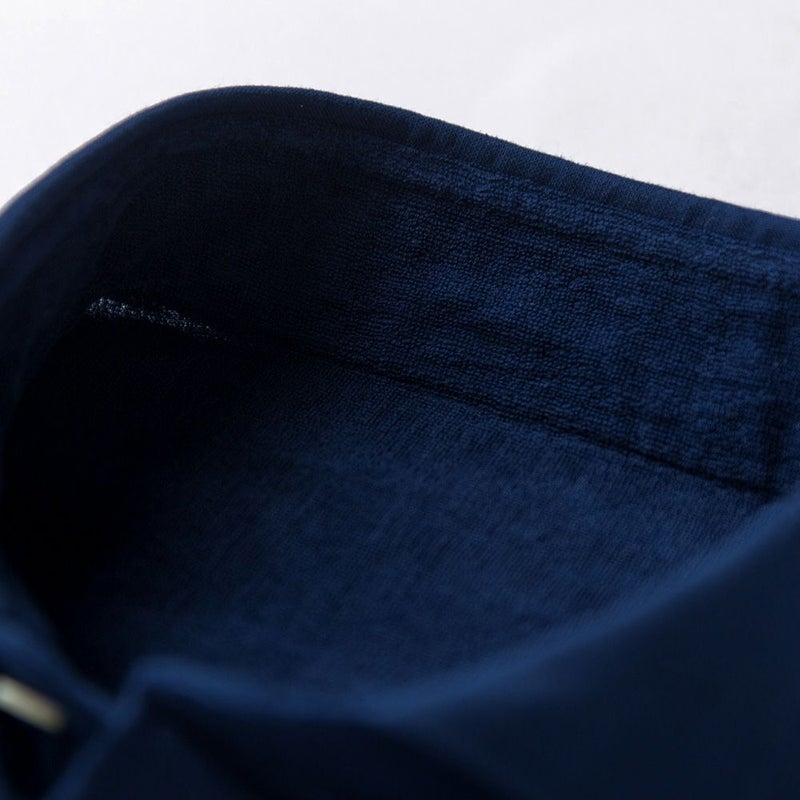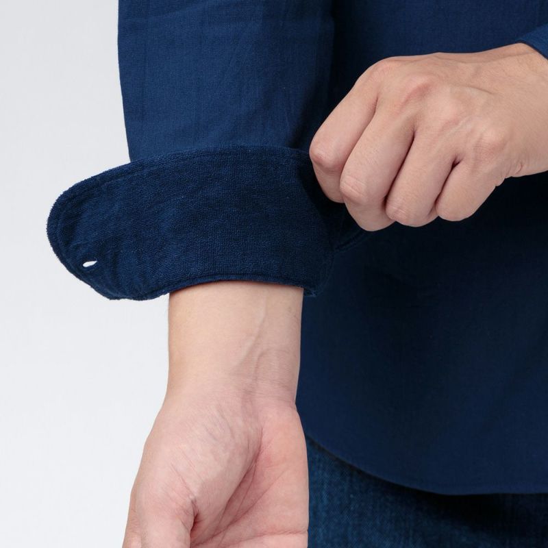 襟やカフス裏などの肌に直接当たる部分を全てパイル生地にしているので、タオルに包まれる心地よさを味わっていただけます。