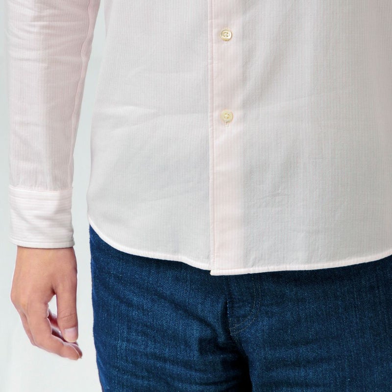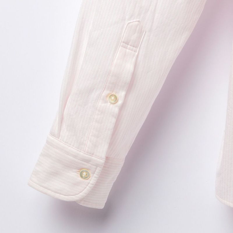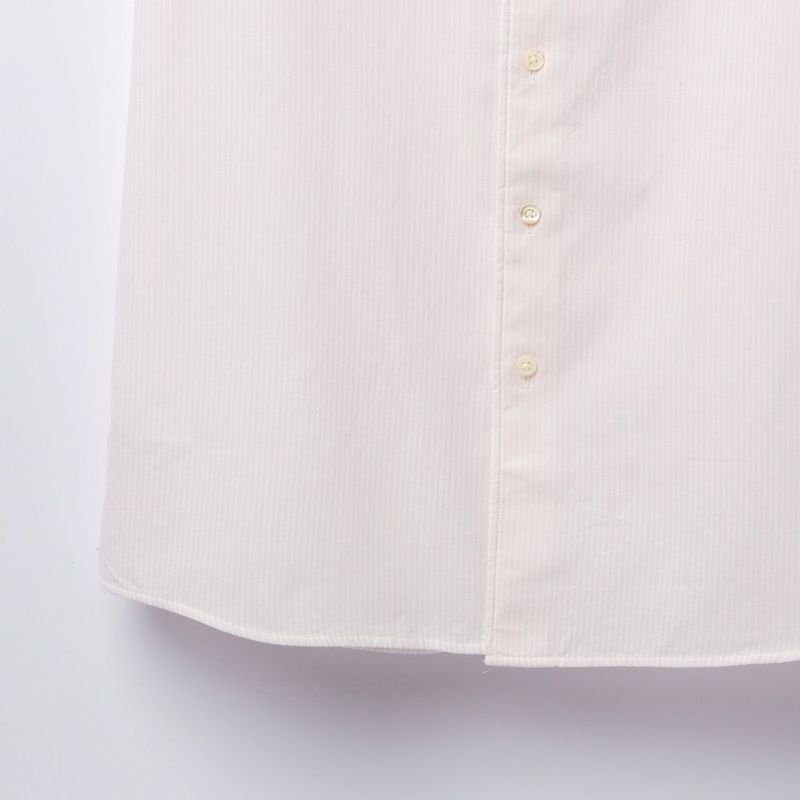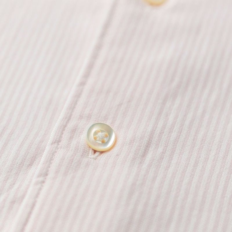 ボタンには人気の淡水貝を使用しており、生地に似合う柔らかな雰囲気のシルキーホワイトカラーです。