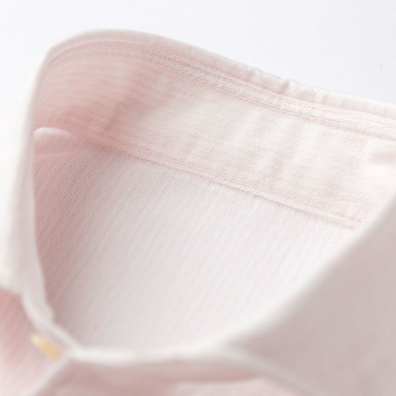 襟やカフス裏などの肌に直接当たる部分を全てパイル生地にしているので、タオルに包まれる心地よさを味わっていただけます。