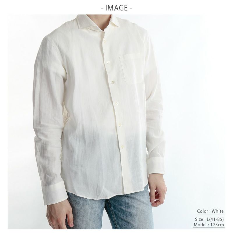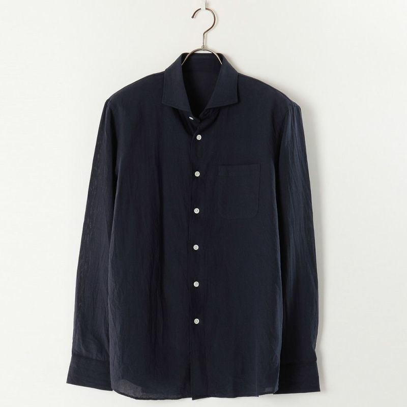 和紙繊維100% メンズ カジュアルシャツ 長袖 カッタウェイ ネイビー