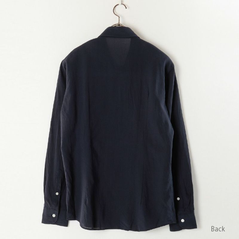 襟先に張りを持たせるためのカラーステイが縫い込まれておりますので、アイロンをかける際は押し付けすぎると跡がつくのでご注意ください。洗いざらしでナチュラルなシワ感がでますので、ノンアイロンでの着用をお奨めします。