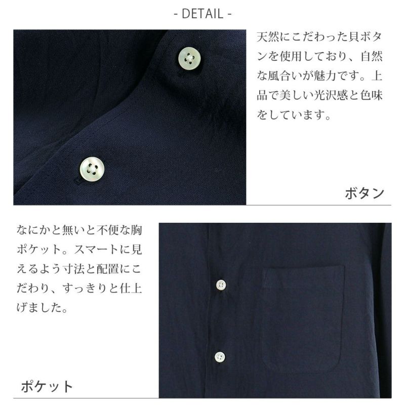 6. 和紙繊維100% メンズ カジュアルシャツ 長袖 カッタウェイ ネイビー