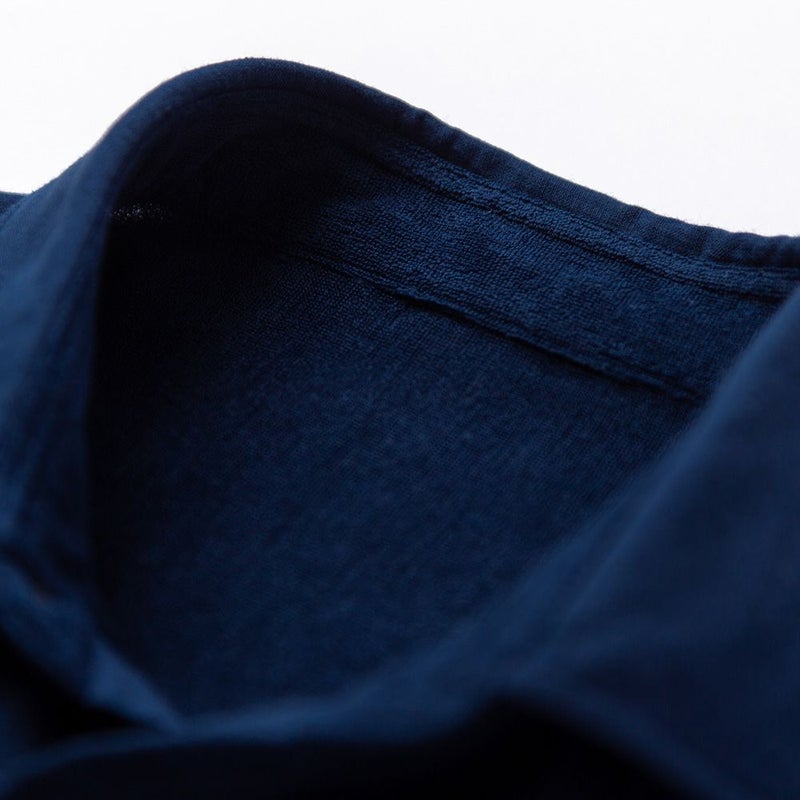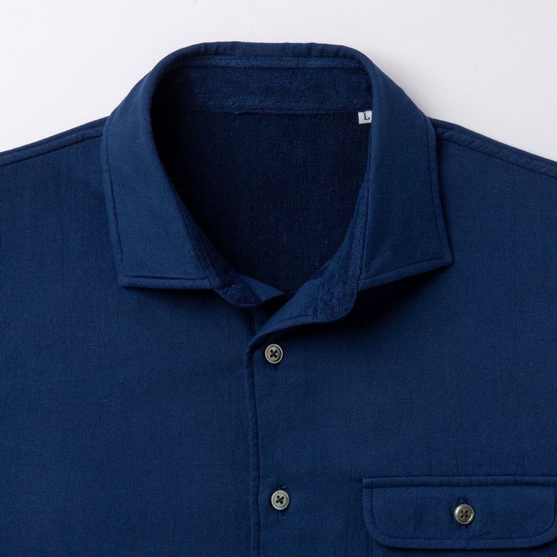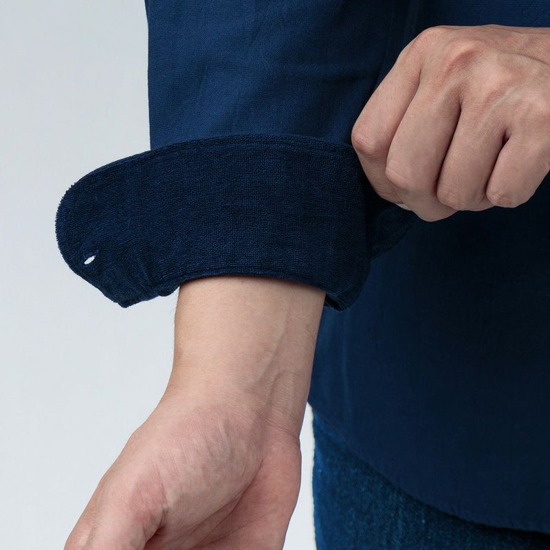 ボディは、襟やカフス裏などの肌に直接当たる部分は全てパイル生地にしており、タオルに包まれる心地よさ。