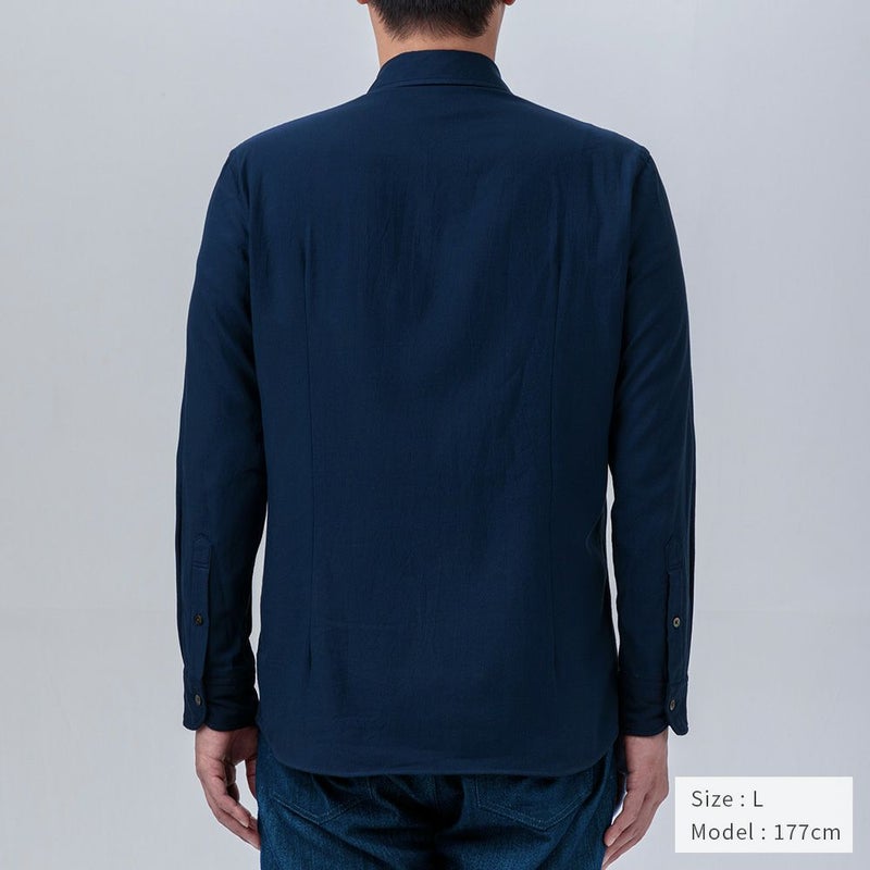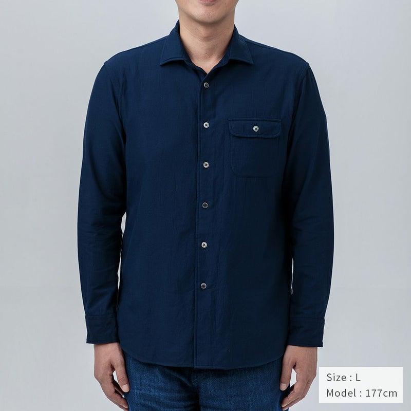 ベーシックであわせやすい定番シャツに、クラシックなワーク・ミリタリー風のフラップ付きポケットをつけました。