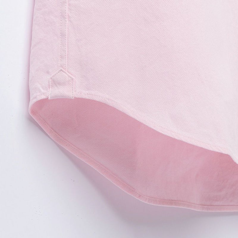 襟型はノーネクタイでも決まるボタンダウン。カジュアルに着こなすのはもちろん、パンツインしてジャケットを羽織ればビジネスシーンにも対応可能です。
