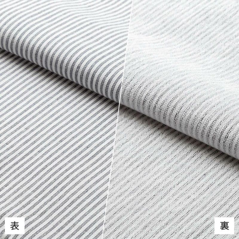 表側はよく目にする平織生地に見えますが、肌に触れる内側は高さ1mm以下という繊細なパイルを持つ特別な生地。 “ふわっサラッ”とした独特な肌触りと、ふわりと身体を包み込む至極のフィット感を実現しています。
