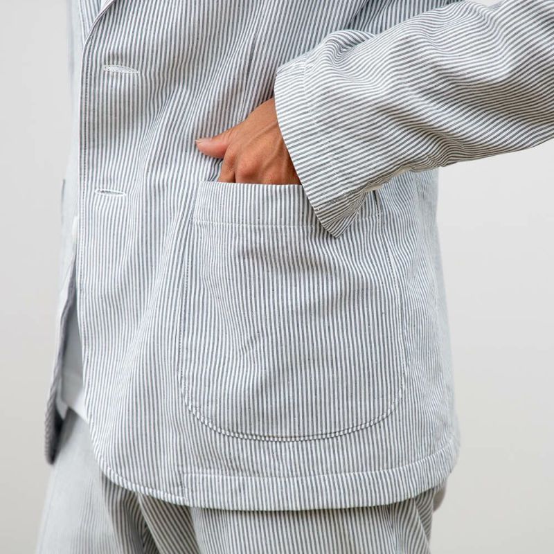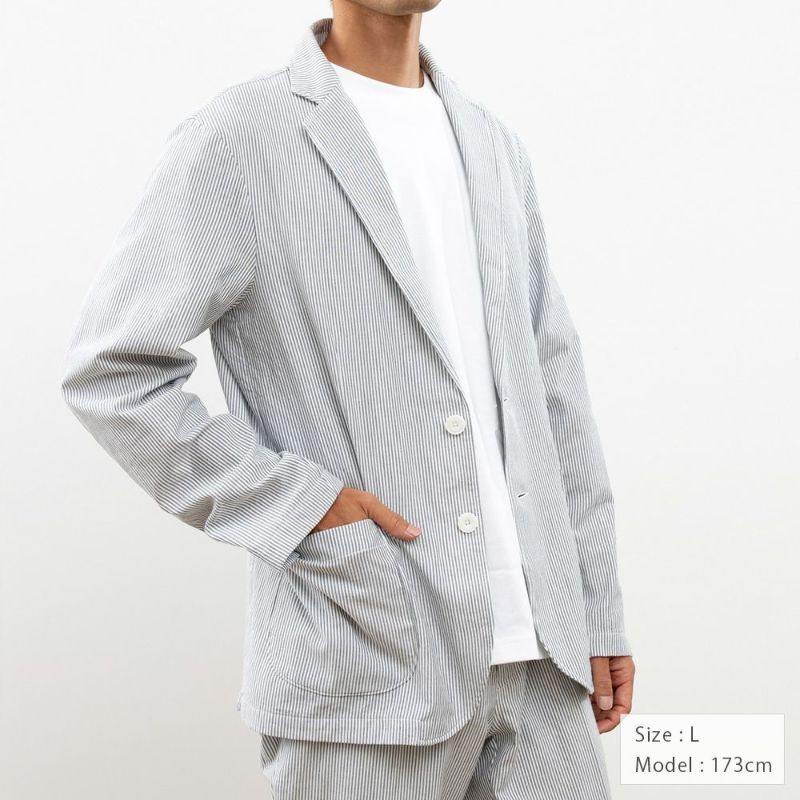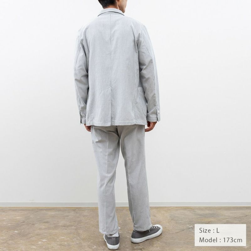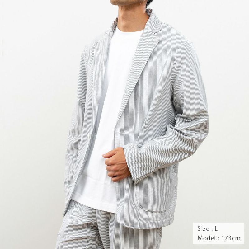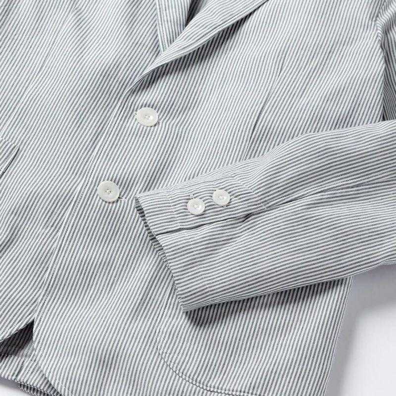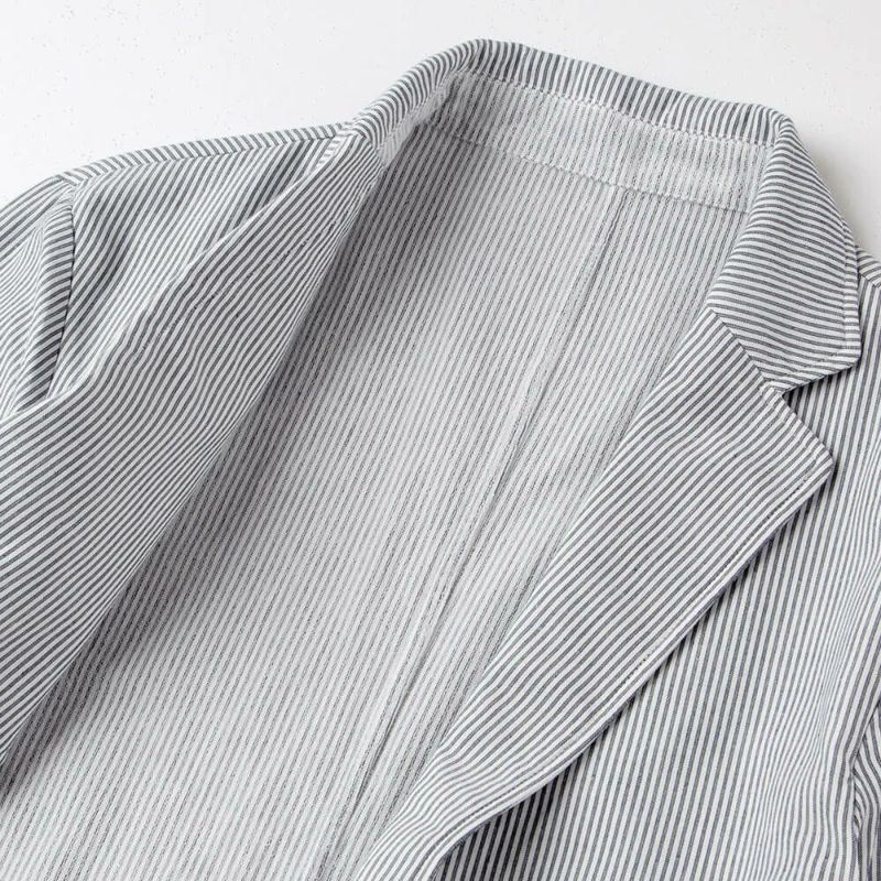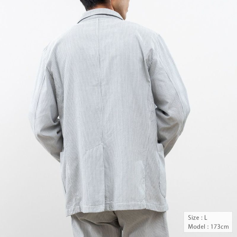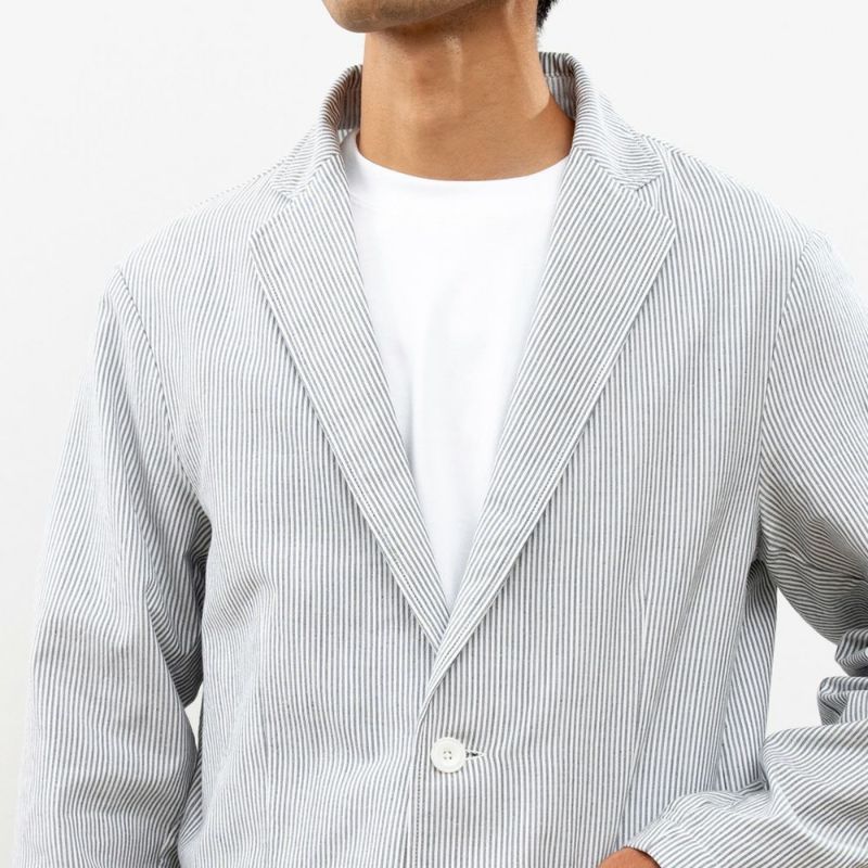 肌触りと軽さを追求したのでジャケットには珍しく裏地がなく、しかしながら縫い合わせが綺麗になるよう仕上げています。