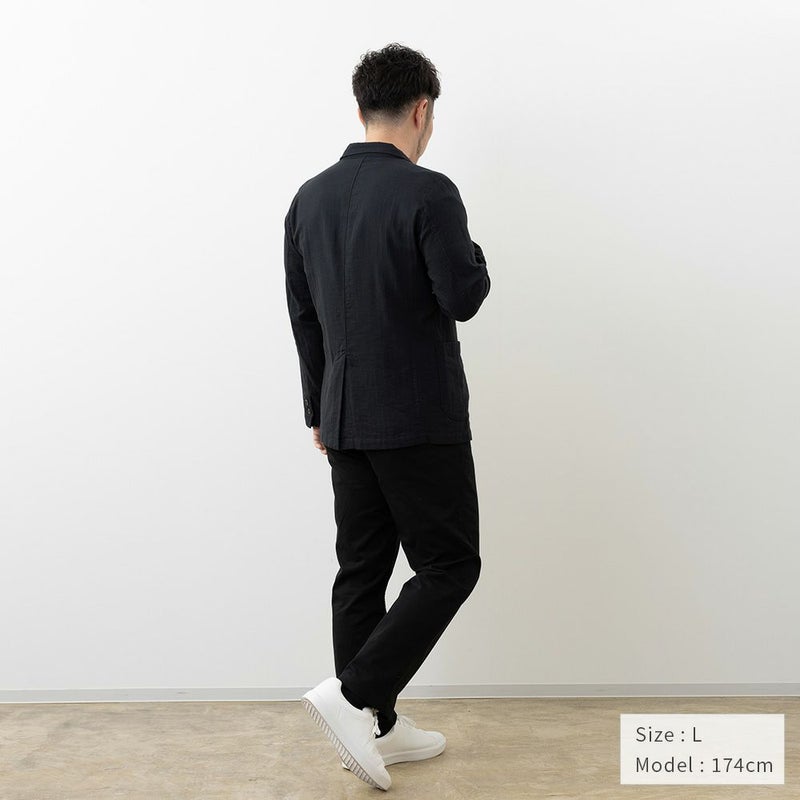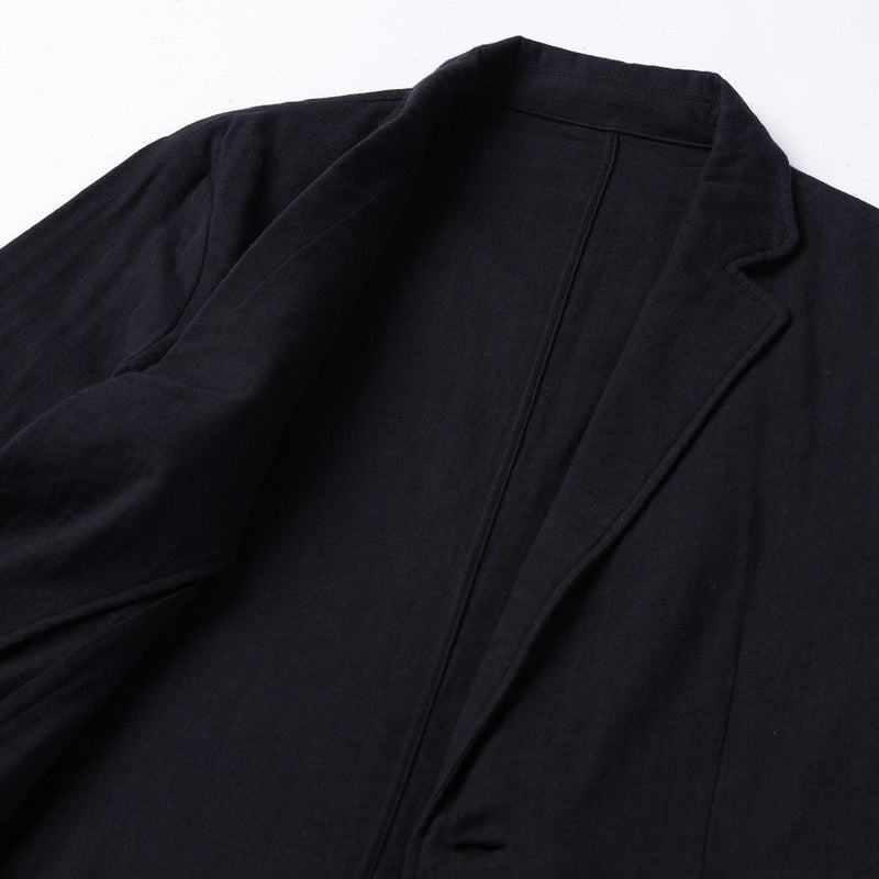 ガーゼ生地の特徴を最大限に生かした、裏地や肩パッドのないライトジャケットです。