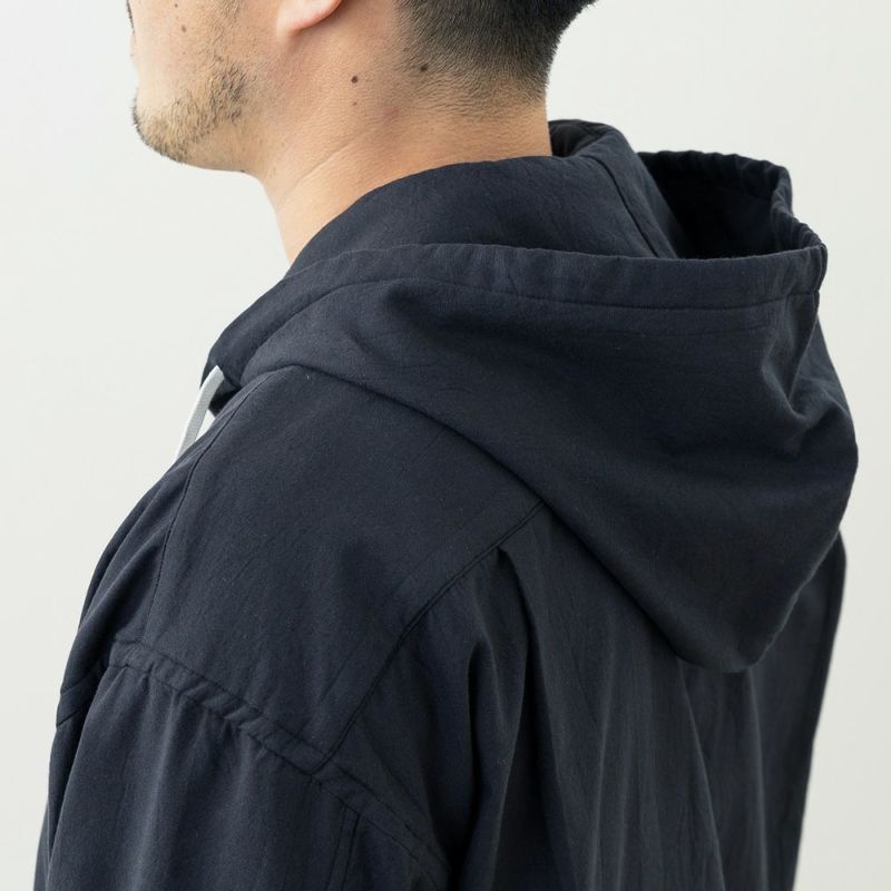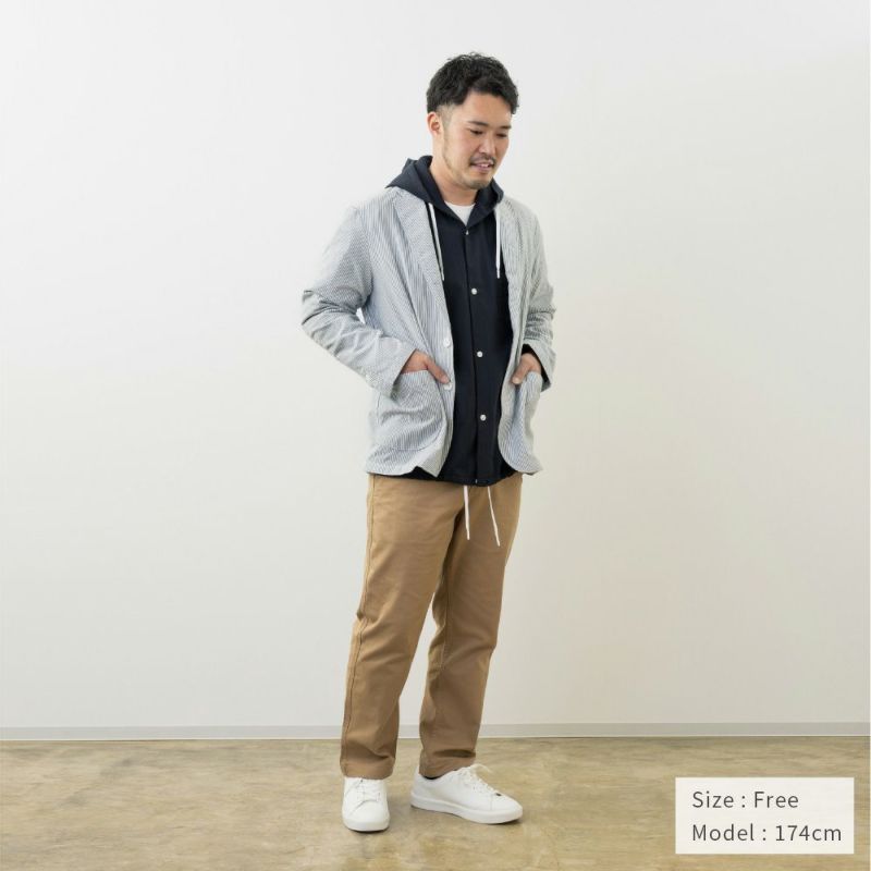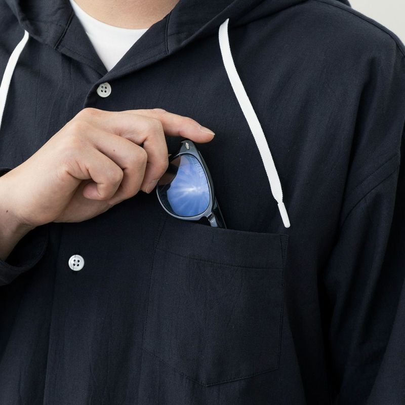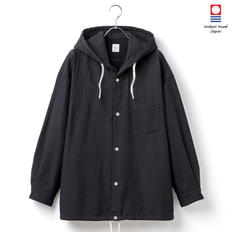今治タオルのパイル生地が水や汗を吸収して、爽やかな着心地を楽しめるシャツパーカーです。