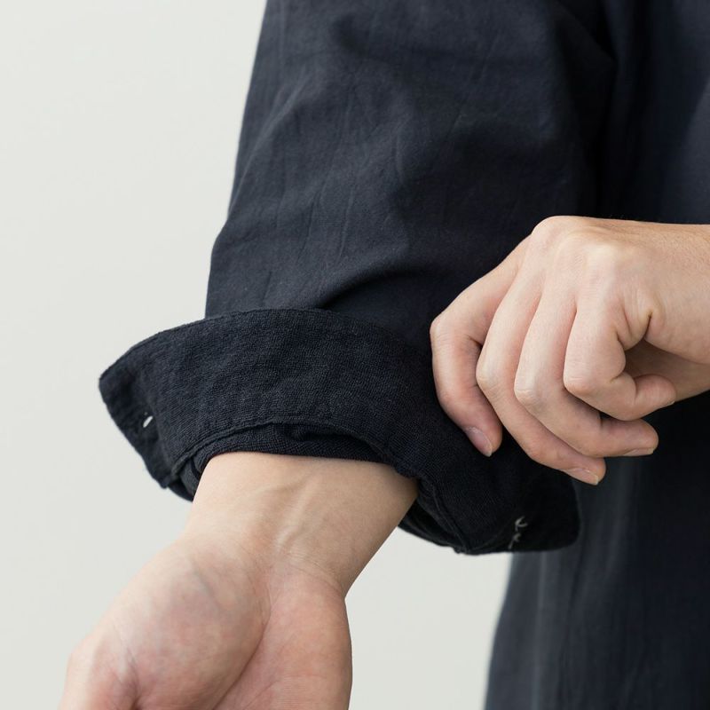天然にこだわった貝ボタンを使用しており、上品で美しい光沢感と色味がナチュラルな生地の風合いを引き立てます。