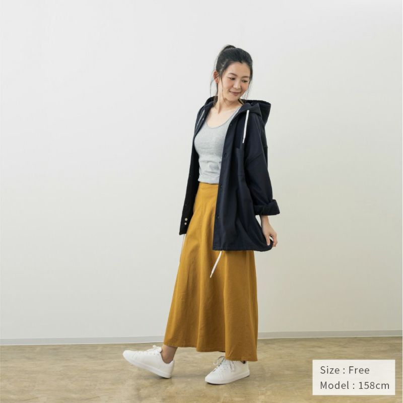 裾についたコードは絞ると保温になり、体温調節にとても便利です。