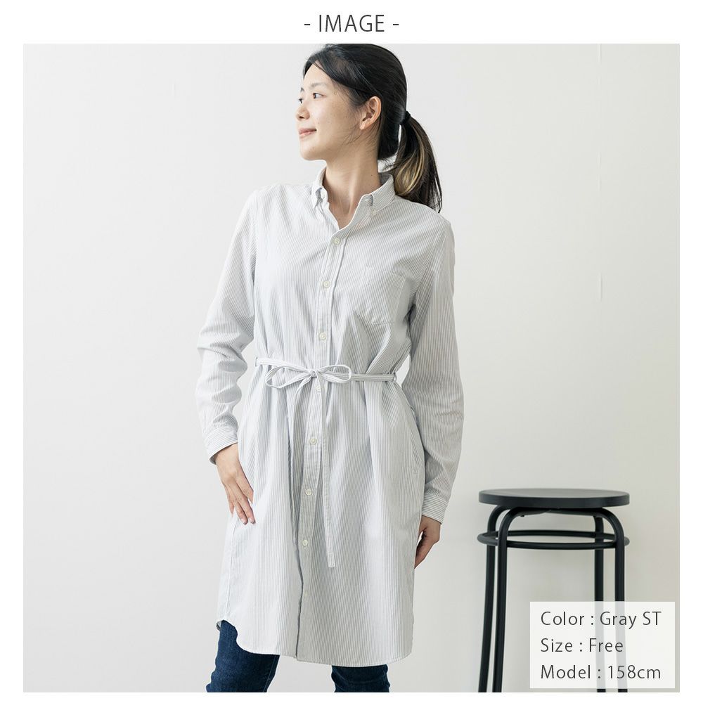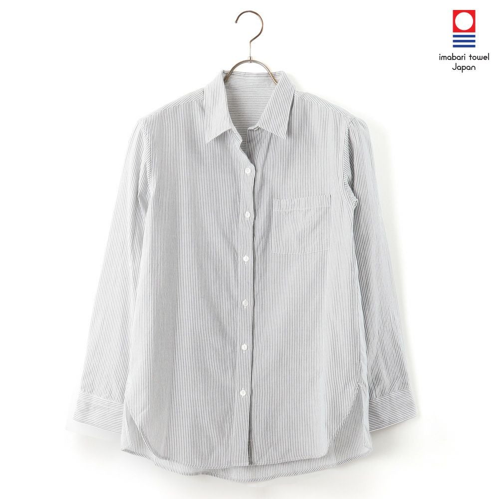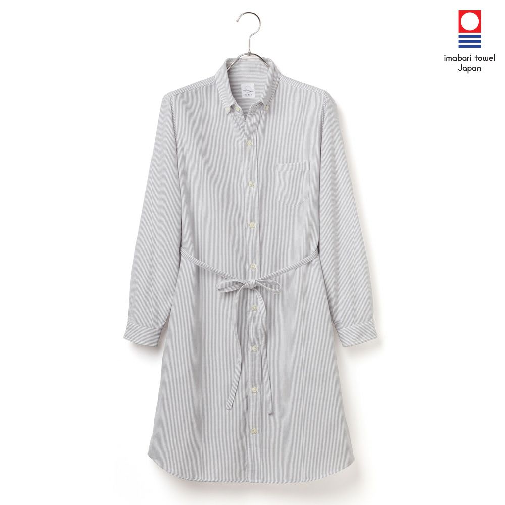 他の画像を見る ラフに羽織ってもワンピースとしてもコーディネートを楽しめる 今治タオル プレミアムパイル レディース シャツワンピース 長袖 グレーストライプ 価格 ¥ 16,500 税込 カートに入れる お気に入りに登録する
