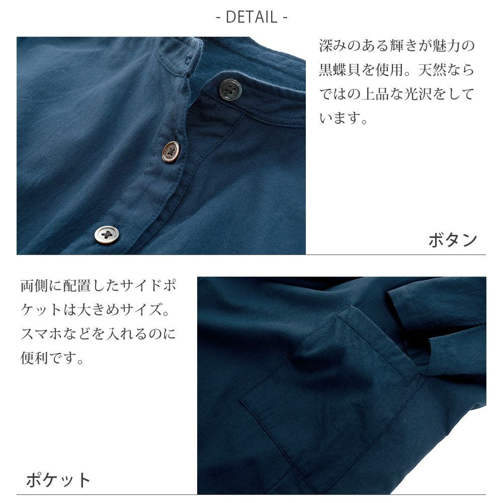 他の画像を見る 軽さ柔らかさを追及したガーゼ素材で涼やかな着心地 和晒京ひとえガーゼ レディース プルオーバー 長袖 バンドカラー ネイビー 価格 ¥ 12,100 税込 カートに入れる お気に入りに登録する