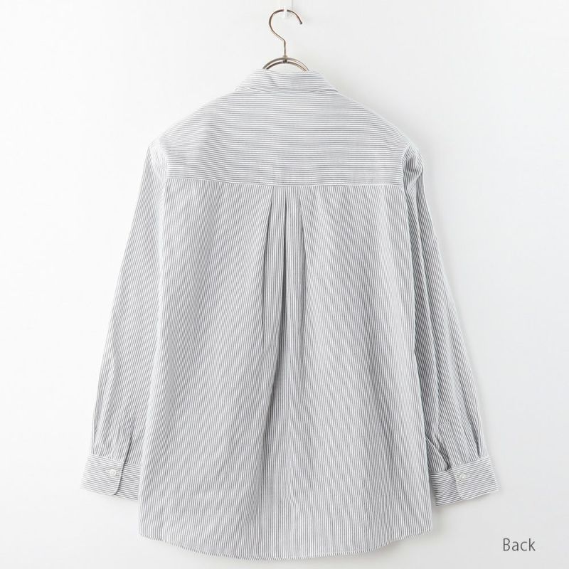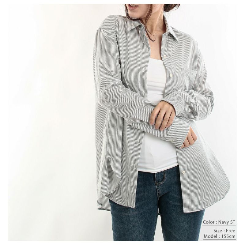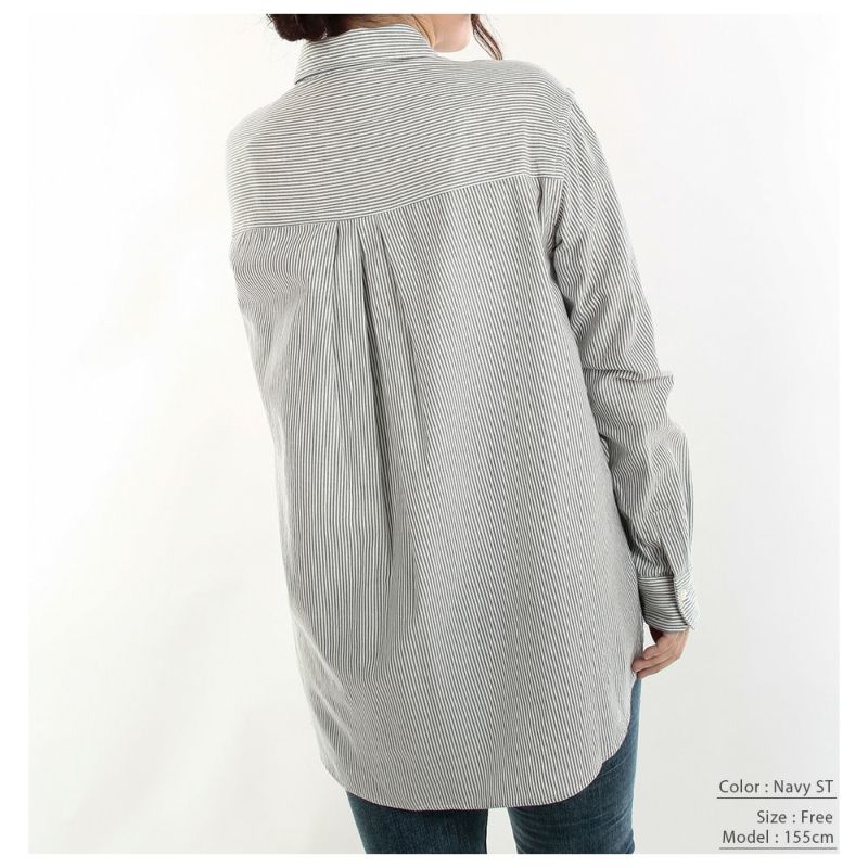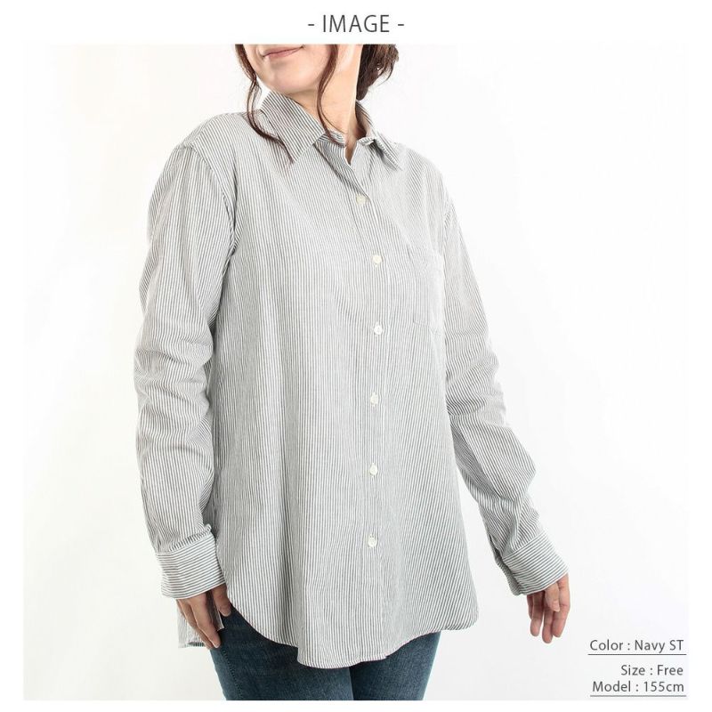 5. 今治タオル プレミアムパイル レディース カジュアルシャツ 長袖 ネイビーストライプ