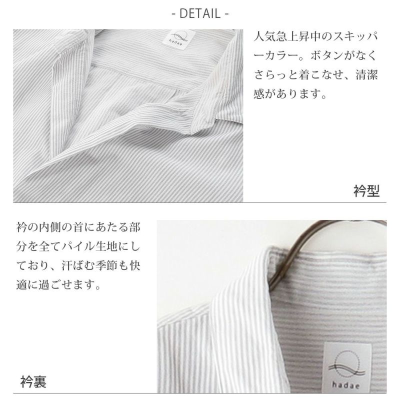 着ているだけですっきりとさまになるスキッパー襟で、オンにもオフにも抜け目ない着こなしを楽しめます。