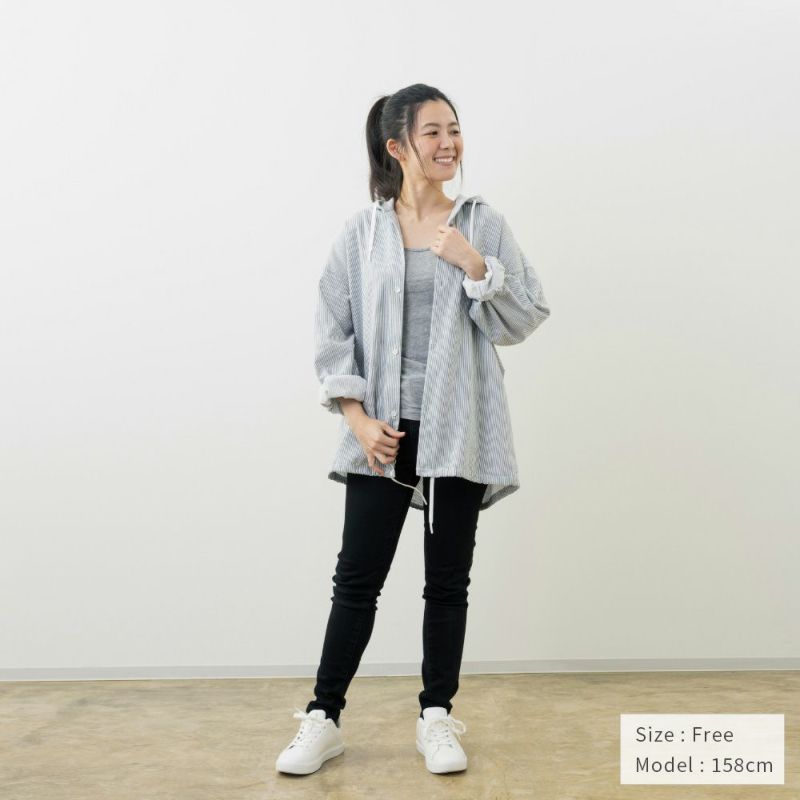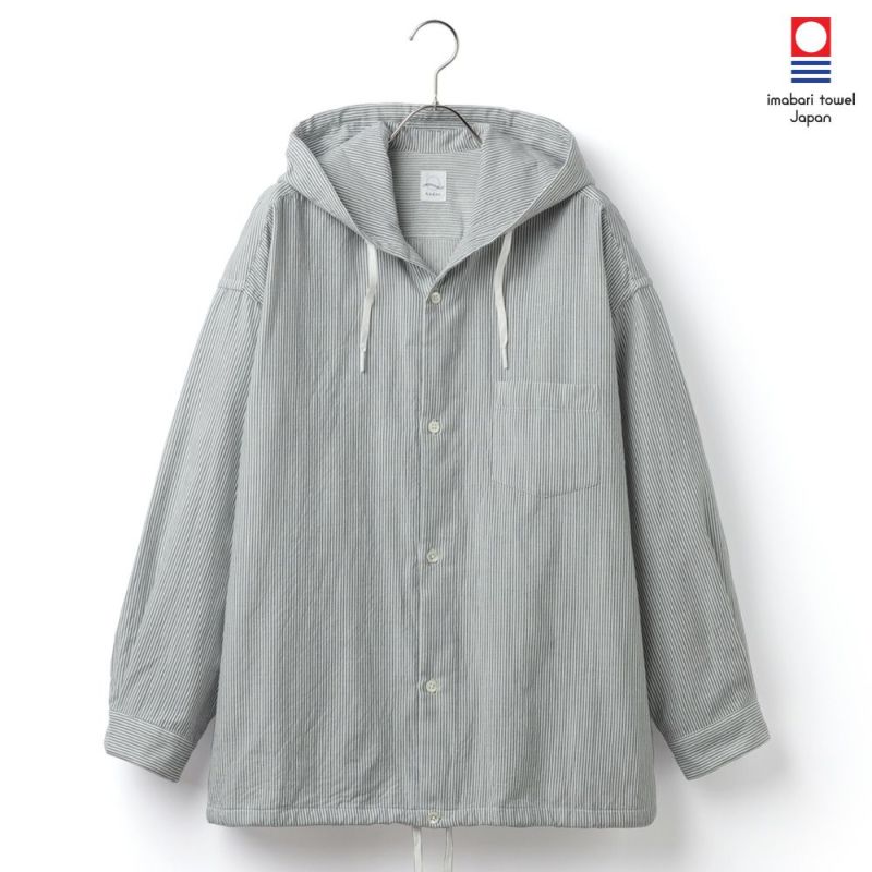 今治タオルのパイル生地が水や汗を吸収して、爽やかな着心地を楽しめるシャツパーカーです。