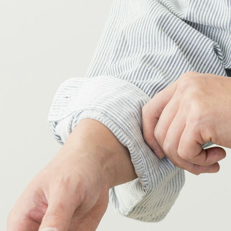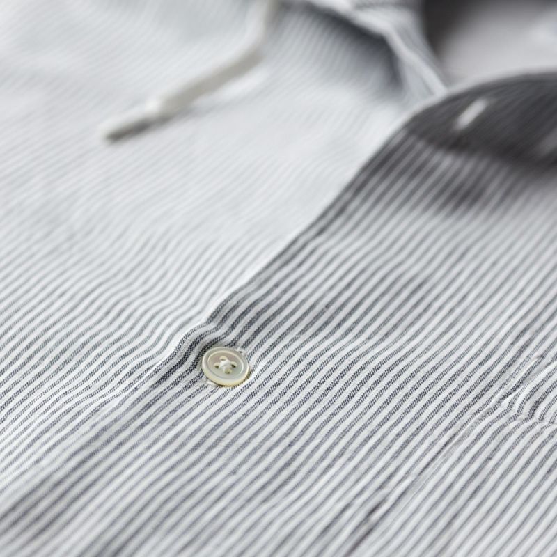 天然にこだわった貝ボタンを使用しており、上品で美しい光沢感と色味がナチュラルな生地の風合いを引き立てます。