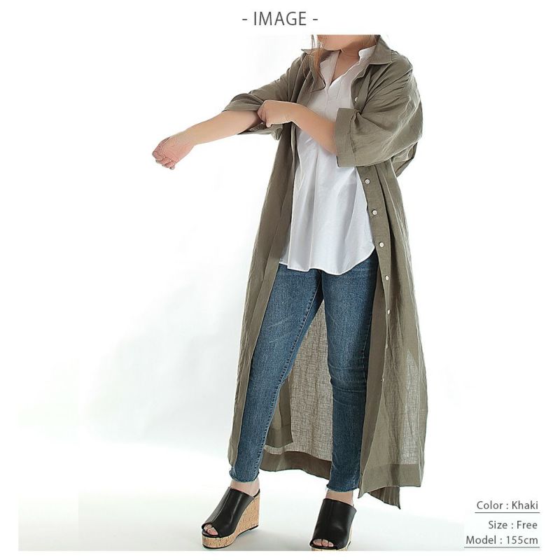 6. 京はんなリネン レディース 羽織ワンピース 藍鉄(ネイビー)