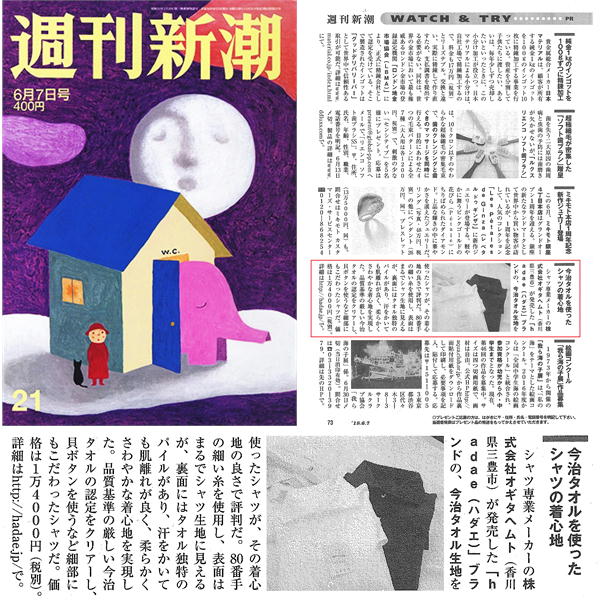 - 週刊新潮6月7日号に 【hadae】今治タオル素材ワンウオッシュカジュアルシャツ が掲載されました。